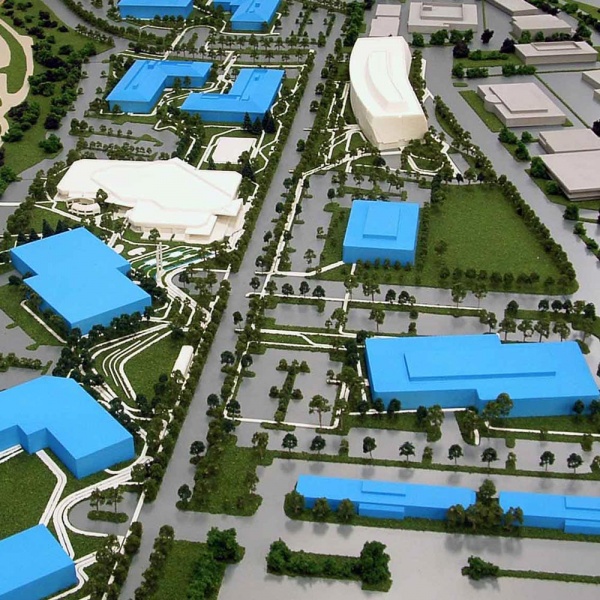 Concept models are often larger than what can be produced in a single 3D print, especially if large amounts of terrain topography need to be shown. LGM has a large format CNC mill that allows us to produce terrain forms as large as 4'x8'x12” high in a single piece! LGM will typically integrate 3D printed buildings with CNC machined terrain forms – this is what we refer to as our “Composite Concept Models.”